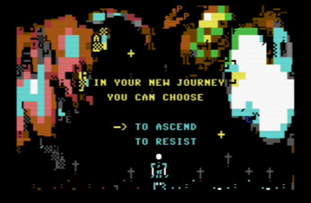 Haunting 8-Bit Atmosphere: Dark, theological-inspired sprite art that pushes the C64's palette to its moody limits.